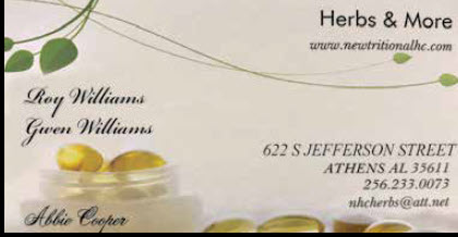 When the body is given what it needs, it remembers how to heal. To get more information go Herbs & More in Athens, NHC Herb Shop in Killen or our website at www.nhcherbs.com. Take this article in for a 20% discount off your first Healthy Pain Combo. You’ll be glad you did.