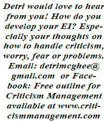 Before we can turn our focus on Criticism Management, we must look at the over-arching area of Emotional Intelligence. Criticism Management deals with the majority of areas within EI, therefore, we need to get a firm understanding of the EI big picture.
