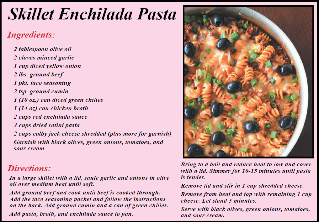 This week’s recipe is perfect for busy weeknights or all of those fun football parties! Adults and kids alike love this flavorful pasta bake. It is great for potlucks and always a fan favorite at my house. Feel free to substitute ground turkey or ground chicken for the ground beef. Enjoy!