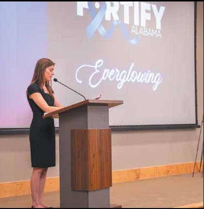 This year’s Fortify Alabama Everglowing Gala will be held at the Jackson Center in Huntsville, on March 28 at 6 p.m., and as tough as the topic is, I can say from experience that they have learned to also provide a truly enjoyable evening for those who attend. Silent auction items are as varied as a certified Fendi bag to alpaca socks. There will be genuinely delicious food, live music from a special guest DJ, a dance floor, a silent auction, clever games with wonderful prizes, and an evening of stories, impact, and vision that will inspire hope.