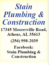 Christian worked for AllStar Plumbers, Inc. for 10 years, and started Stain Plumbing & Construction in 2015. In 2018 they gained their A+ rating with the Better Business Bureau. As is the case with so many of our Athens Now clients, Christian greatly appreciated his time at AllStar, but got bitten by the “business owner bug” himself and knew that he needed to launch his own company. Eventually he and his wife, Bethann purchased an older home on Mooresville Road with the intention of restoring it, and they are on their way to completing that between working their businesses. Sometimes it can be slow going in the remodel/restoration department when you have kids, activities, careers, and in our case most recently, winter storms. The address, which is the same as their home, is 17345 Mooresville Road, Athens, AL 35613, and they are available 24/7.