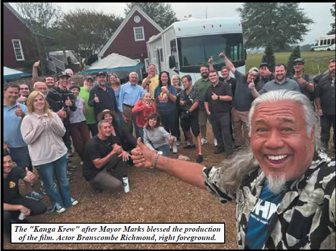 On September 26, Mayor Ronnie got a chance to do something completely unexpected, and that was to bless the production of a movie that is being produced here in Athens. Our city had been contacted by people in Hawaii about coming to Athens-Limestone and producing a “Hallmark-type” family feature film. When the mayor and I met for our usual appointment, the fun of the event and the beginning of filming was still fresh, and the details of the project are going to have to wait until the studio releases them. I don’t know the storyline, but somewhere in it a live kangaroo takes center stage. Branscombe Richmond, who is a veteran TV and movie actor based in Hawaii, is the one who asked Mayor Ronnie to bless the film, and “Kanga” (a stand-in name from Winnie the Pooh that I chose to use for the movie-making marsupial) was resting in the motor home while the group shot you see here was taken. So, Mayor Ronnie did the honors and then talked about something I found both refreshing and encouraging.
